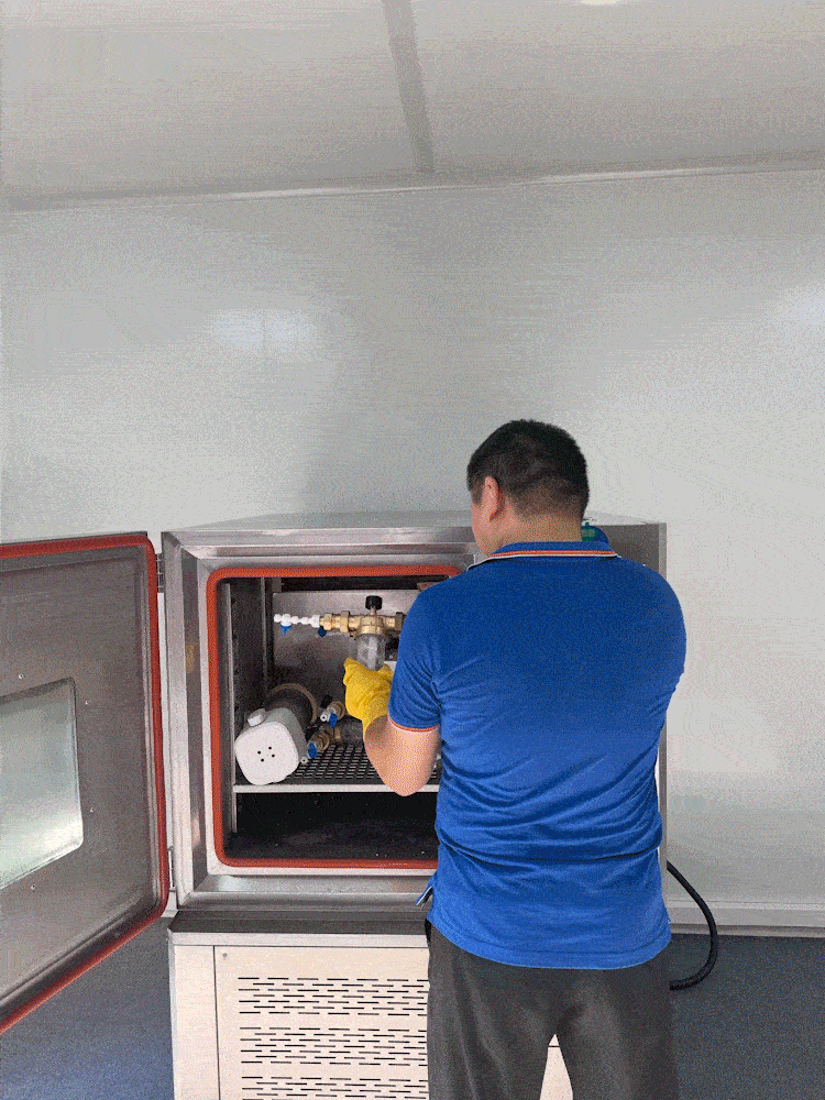 实验方式:为了验证前置过滤器在低温条件下的安全性和可靠性。我们将11款前置加压加水,分批置于零下30℃的可程式恒温恒湿试验箱中,持续3小时,过程中观察前置过滤器是否有异常现象,如裂痕、变形、功能失效等。3小时后从试验箱中取出,在自然条件下解冻,重复3次。