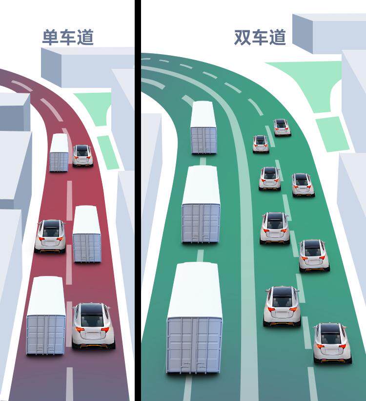 单滤芯好比单车道:大货车和小轿车挤在这一条车道行驶,一开始会比较通畅,但久而久之容易发生意外或车流堵塞变慢。