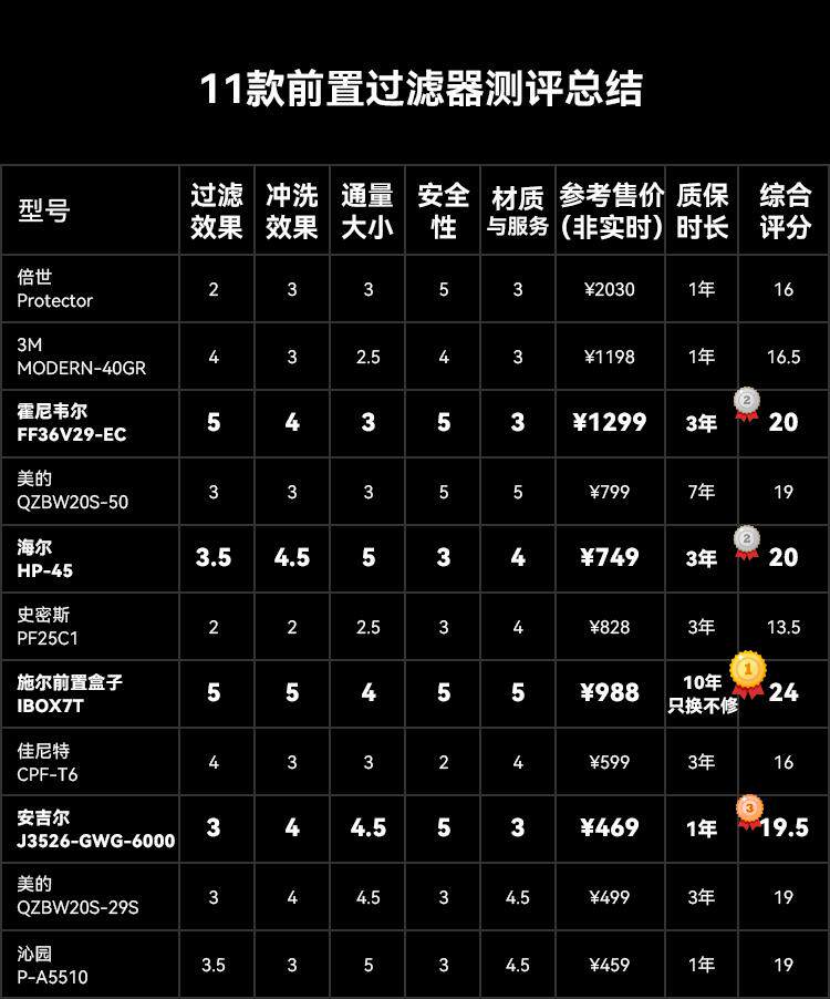 我们从以下5个维度,横向实测这11款前置过滤器是否像宣传那样长久耐用。